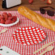 Assiettes En Carton Blanc sur rouge grand format Pois