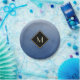Assiettes En Carton Bleu Brossé Élégant Avec Monogramme Or Simple