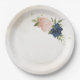 Assiettes En Carton bleu marine fleurs vert feuille mariage