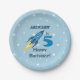 Assiettes En Carton Bleu Retro Rocket Ship Personnalisé Birthday Boy