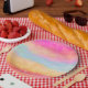 Assiettes En Carton Bleu rose Jaune arc-en-ciel Abstraites bandes
