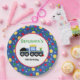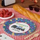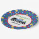 Cette plaque en papier de couleur vive est équipée d'un moteur de train bleu et jaune et d'une voiture à charbon entourée d'une frontière bleue avec des à petits pois rouges, jaunes et verts. C'est l'ajout parfait à toute célébration d'anniversaire d'enfant passionné de train et il comprend un endroit pour ajouter le nom et l'âge de votre enfant.