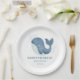 Ces assiettes de papier de fête d'anniversaire mignonnes présentent une jolie baleine à l'aquarelle avec des bulles dans un fond de couleur blanche. Personnalisez la plaque papier de la fête d'anniversaire en ajoutant le nom de votre enfant et les détails de la fête.