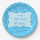 Assiettes En Carton Blue Damask Baby Boy Nom Personnalisé