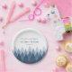 Ces plaques en papier sont parfaites pour tout couple qui planifie une fête mariage rustique dans les bois. Le design présente une gamme de forêts ombragées dans les tons bleus sur un arrière - plan blanc avec une formulation modifiable coordonnée couleur. Le design simple peut être personnalisé pour convenir à votre événement spécial et sera l'accessoire parfait pour toute fête à thème rustique, y compris : douches nuptiales, fiançailles, wedding showers, fêtes d'anniversaire et bien plus encore.