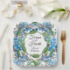 Une élégante célébration funéraire de plaque de papier de vie avec verdure et aquarelle bleu Oubliez-moi pas Fleurs.