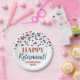 Plaques de retraite heureuses personnalisées en bleu foncé et motif confetti rouge.