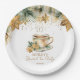 Noël hiver thème nuptiale douche thé fête vaisselle personnalisée assiettes de fête, aquarelle tasse de thé avec flocons poinsettia et biscuits branches de pin moderne décontractée police hiver nuptiale plaques de douche