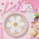 Plaques de premier anniversaire d'inspiration rétro avec marguerites de style années 70 et polices et couleurs boho.