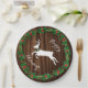 Plaque de Noël festive faite dans un style rustique en bois foncé, avec des graphiques de joli saint vert et rouge, autour des bords. Une silhouette blanche d'un cerf, avec une couronne sainte autour du cou, orne le centre de l'assiette, avec un texte blanc personnalisé. Personnalisez le texte pour lire ce que vous voulez. De bonnes assiettes pour votre fête de vacances.