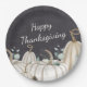 Créez le paysage de table parfait avec ces plaques de papier Bon thanksgiving rustique Citrouille Farmhouse. Personnalisez le texte pour lire ce que vous voulez pour votre automne, automne ou événement confortable. Avec une combinaison parfaite de citrouilles blancs, de gourdes, de pinecones, de verdure d'eucalyptus et d'un arrière - plan vintage en tableau noir, il faut absolument les déguster pour la soirée du dîner !