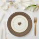 Plaques en papier Thanksgiving décorées d'une dinde colorée au centre sur un arrière - plan en ivoire avec une nouvelle nuance de latte Brown jante et couleur intérieure. Acheter tel quel ou personnaliser. Coordonnées avec sets de table et serviettes en papier.
