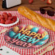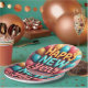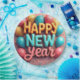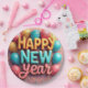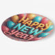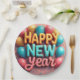 Joyeuses assiettes en papier du Nouvel An avec ballons et confettis.