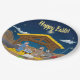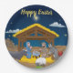 Jolie crèche pour Happy Easter avec un ciel nocturne et un bébé dans la crèche. Assiette en carton.