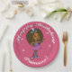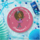 Customisez la fête d'anniversaire de votre fille avec nos plaques en papier. Joli dessin animé d'une fille afro-américaine en rose avec une tiara bijoux avec les mots : Bonne princesse d'anniversaire !