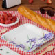 Assiettes En Carton Bordure Iris Violet En Blanc