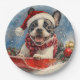 Assiettes En Carton Boston Terrier Dog in Sledge Let it Neige Noël