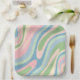 Assiettes En Carton Boucles ondulées Motif Abstrait rétro Pastel bleu