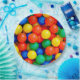 Bouncy Balls Ball Pit thème Anniversaire fête bleu, rouge, vert, orange et jaune plaques en papier.