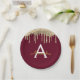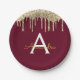 Assiettes En Carton Bourgogne et Parties scintillant d'or Monogramme A