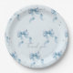 Des assiettes et des serviettes en papier rond d'inspiration Coquette élégantes sont disposées pour un baby shower garçon. Conçue avec de charmants arcs bleus et des détails élégants, cette vaisselle ajoute une touche personnalisée à votre célébration et complète votre décor de fête.