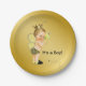 Plaques en papier baby shower d'abeille avec adorable bébé blonde aux cheveux clairs portant une tenue d'abeille mignonne sur un riche arrière - plan en or avec des abeilles volantes. Vous pouvez ajouter du texte pour personnaliser ces plaques de papier baby shower d'abeilles noir et or, et vous pouvez supprimer l'arrière - plan or pour ajouter la couleur de votre choix.