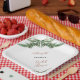 Il est doté d'une épine de Noël rouge et verte, de cônes et de baies. Ces plaques en papier correspondent aux invitations douche du même design.