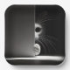 Un curieux chat blanc regarde de derrière un mur avec ses whiskies et sa patte contre un arrière - plan sombre