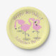 C'est l'heure de la fête ! Ce joli trio de flamants roses apportera un peu de plaisir tropical à toute fête. Dessiné dans le style d'illustration de dessin animé sur un arrière - plan à pois jaune et blanc clair.