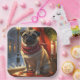 Une scène de vacances pleine de charme avec un chien assis paisiblement à côté d'une fenêtre, entouré de lumières de Noël éclatantes. Ce design cosy et festif reflète l'esprit de la saison, parfait pour ajouter chaleur et charme à tout espace. Idéal pour les amoureux de les chiens et les amateurs de décoration de vacances.