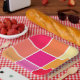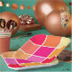 Assiettes En Carton Carrés rose, orange et jaune