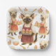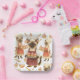 "Sweeten up your cat party with these adorable paper plates featuring a cat surrounded by delicious cupcakes. Perfect for serving treats at your next feline-inspired celebration!"