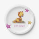 Cute minimaliste plaques de papier de fête avec l'illustration d'un petit chaton assis. Le design est complété par quelques étoiles roses et jaunes. Idéal pour les baby showers, anniversaires et toute fête amoureux des chats. Illustré et dessiné par Patricia Alvarez.