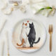 Deux chats s'éloignent en tenant des pattes regardant un coeur rouge flottant au-dessus d'eux.
