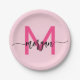 Assiettes En Carton Chaud rose moderne Script Girl Monogramme Nom