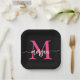 Assiettes En Carton Chaud rose noir moderne Script Girl Monogramme Nom