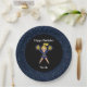 Plaques en papier "Happy Birthday" noir / bleu étincelant pour la fête parfaite ! Personnalisez cette assiette avec le nom de votre pom-pom girl !