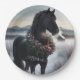 Assiettes En Carton Cheval noir dans la neige avec couronne de Noël