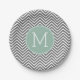 Assiettes En Carton Chevron Charbon et Vert Menthe avec Monogramme Per