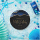 Ces plaques élégantes et glamour de fête du 50e anniversaire présentent une aquarelle d'une géode d'agate dans les tons bleus avec des reflets de parties scintillant d'or. Les mots "50e anniversaire" apparaissent dans la parties scintillant en faux or dans une police décorative moderne d'écriture manuscrite. Customisez-le avec le nom de l'honoré et la date dans le texte de couleur or.