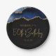 Assiettes En Carton Chic Agate Geode Blue Gold 50e fête d'anniversaire