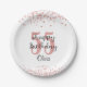 Célébrez un 55ème anniversaire ou n'importe quel avec ces plaques de papier de fête personnalisées conçues avec des confettis de parties scintillant en or rose et un script moderne et chic HAPPY BANTHDAY titre personnalisé avec leur âge et nom ou autre texte. Contactez le concepteur via Zazzle Conversation ou makeitaboutyoustore@gmail.com si vous souhaitez modifier ce design, sur un autre produit ou des éléments de coordination.