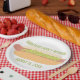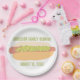 Créez des assiettes personnalisées sur le thème du hot dog pour les repas de cuisine, les réunions de famille, les concours de mangeurs de hot-dog et plus encore. Ces assiettes sont illustrées par un hot dog surmonté d'un pickle relish et votre propre texte personnalisé en vert à la pointe et au bas.
