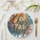 Les assiettes en papier présentent un design ludique, avec des puces de chocolat éparpillées et des miettes de biscuits contre un arrière - plan bleu clair. Le logo Chips Ahoy est imprimé au centre de l'assiette, et les bords sont décorés d'un motif répétitif de puces de chocolat et de miettes de biscuits. Les assiettes apportent une touche festive et amusante à toute fête ou événement.