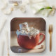 Un joyeux bonhomme de neige de marshmallow se détend dans une tasse vapeur de chocolat chaud, entourée de crème fouettée et de mini-guimauves