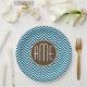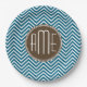 Assiettes En Carton Chocolat et Motif Chevron Turquoise avec Monogramm