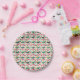 Paper plates decorated with a cute Christmas pattern featuring yellow stars, tiny trees, red ornaments, candy canes, and small gifts. Ideal for winter celebrations, family gatherings, and festive holiday parties.