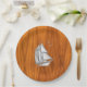 Assiettes En Carton Chromes Silver like Sailboat on Teak Veneer