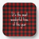 Texte de vacances sur le buffle rouge et noir plaid. Le texte est modifiable.