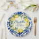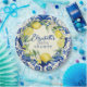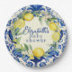 Célébrez la momie à venir avec ces tuiles bleu méditerranéen vintage et des plaques de papier d'inspiration citron. Ces plaques de papier Baby shower Vintage en tuiles bleues et citrons peuvent être customisées avec vos propres détails. Le design comprend un arrière - plan de tuiles bleues vintages avec des oeuvres d'art réalistes au citron.